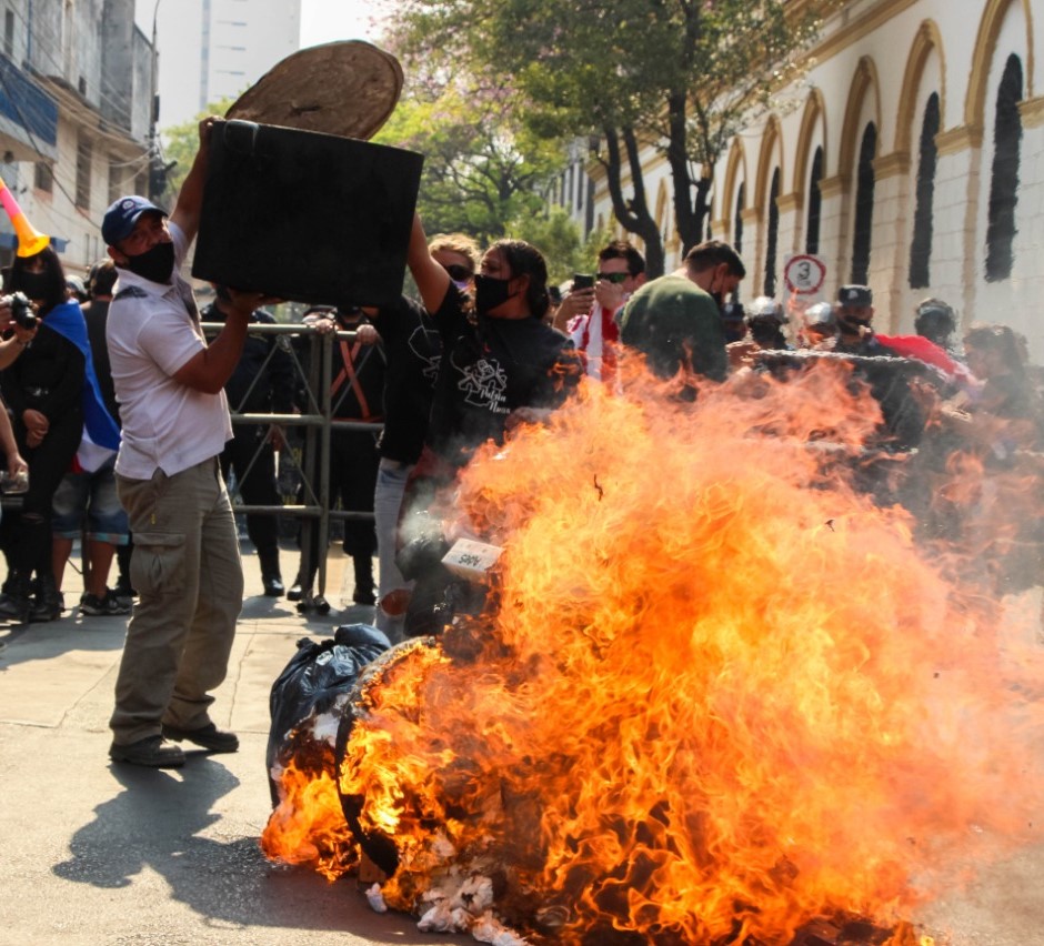 En enérgico discurso la referente de las Ollas Populares y Solidarias del Bañado Sur, Kimberli Samaniego, expresó: «Desde que esto empezó pusimos el pecho, estuvimos ahí. Todos los días estamos cocinando. Cuando salió el proyecto de ley hicimos nosotros esas modificaciones porque esta ley es nuestra. Ñande jajapo. Y hoy nuevamente ganamos, el pueblo ganó porque nosotros somos el pueblo. Ahora viene el gran desafío de que ese dinero llegue a las ollas. Este es un paso. Ahora empezamos a luchar para que los insumos lleguen en cantidad y calidad, para que ninguna olla pare. Para que todos los días tengamos qué comer. ¡Fuerza compañeros! »