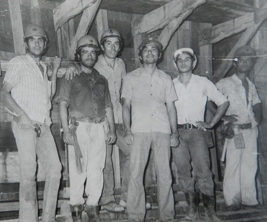 Fotografía de inicio: Octavio Rubén en el centro, con sus compañeros de la Represa de Acaray.