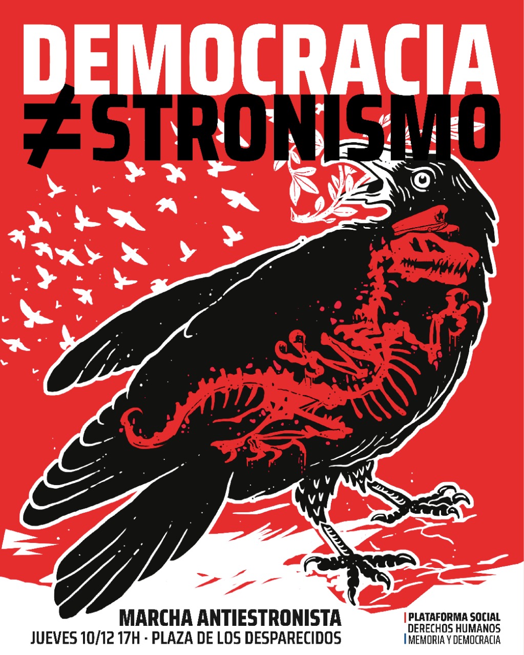 Bajo la consigna “Democracia no es igual a stronismo”, la Plataforma Social de DDHH, Memoria y Democracia, convoca hoy a las 17 hs. a la Plaza de los Desaparecidos, ubicada sobre la calle Paraguayo Independiente, al lado del Palacio de López.