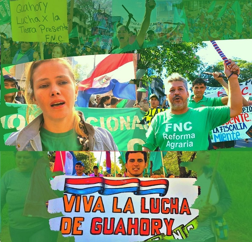 La FNC venía impulsando la campaña “Guahory: un pedazo de soberanía”, planteando la recuperación de esta antigua colonia del Instituto de Desarrollo Rural y de la Tierra (INDERT), que fuera invadida por sojeros brasileños, quienes con apoyo de autoridades de los tres poderes del Estado, impulsaron el desalojo de pequeñas y pequeños productores campesinos de la comunidad.