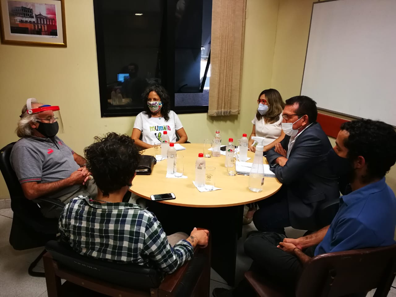 Posteriormente se llevó a cabo un encuentro con referentes de la Plataforma de DDHH, Memoria y Democracia, en la cual se expuso sobre la criminalización hacia militantes y hacia todas aquellas personas que denuncian o se manifiestan en repudio al asesinato de las niñas, la desaparición de Lichita y en solidaridad con la familia Villalba. Refieren que el cerco mediático es muy grande y que existe una necesidad urgente de construir alianzas y relatos que expongan y difundan sobre el criminal accionar del gobierno paraguayo y su insoportable impunidad que llega al punto de que las fuerzas policiales salgan a reprimir todos los días levantando banderas blancas con la frase «la paz es el camino», tal como ha sucedido durante estos 13 días de movilización masiva y protestas en todo el país, que contextualizan la visita de la mencionada misión internacional de DDHH.