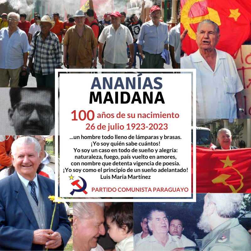 Hoy se cumplen 100 años del nacimiento de nuestro camarada Ananías Maidana y 70 años del asalto al Cuartel del Moncada en Cuba. A estas dos conmemoraciones enormes, debemos sumar una tercera, que cumple recién cinco años y que también tiene ese valor de los triunfos políticos y morales: la absolución y liberación de los presos de Curuguaty. De modo que para las y los comunistas del Paraguay, la consigna “¡Siempre es 26!” tiene un profundo y arraigado sentido.