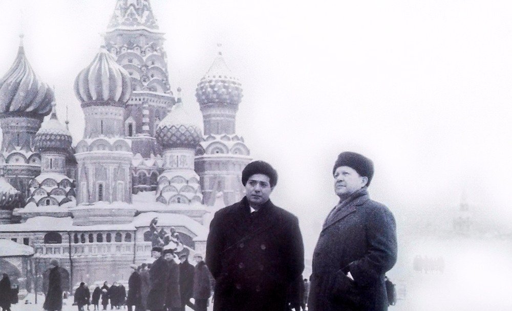 Elvio Romero (izq.) y José Asunción Flores (der.) en la Catedral de San Basilio de Moscú, URSS. Circa 1969.