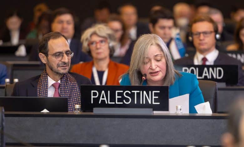 En este contexto, desde su podio en la sesión del Comité Intergubernamental para la Salvaguardia del Patrimonio Cultural Inmaterial de la Unesco, Palestina pidió acciones contra el genocidio cultural que perpetra “Israel”.