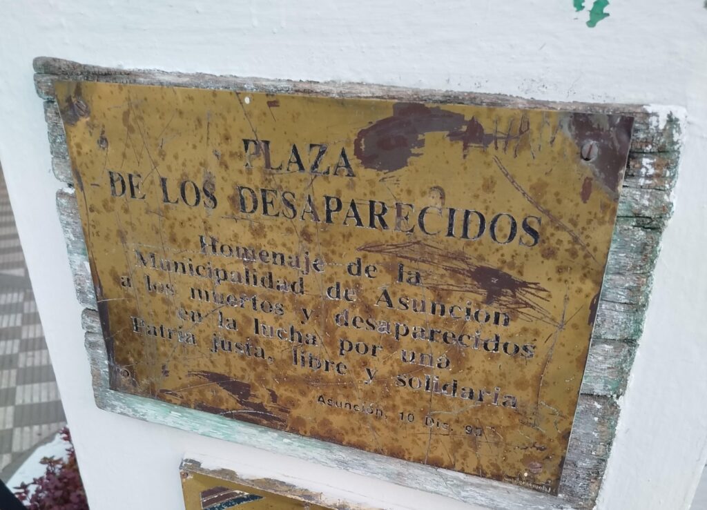 El pasado jueves 26 de diciembre de 2024 la Plataforma Social de Derechos Humanos, Memoria y Democracia realizó una convocatoria denominada «¡En defensa de la Plaza de los Desaparecidos!», a la que asistieron más de un centenar de personas. La convocatoria surgió a raíz de la actividad organizada por la Oficina de la Primera Dama denominada “Plaza Navidad”, en la que se omitió dolosamente el nombre oficial de la plaza, llamándola “Plaza al costado del Palacio de López”.