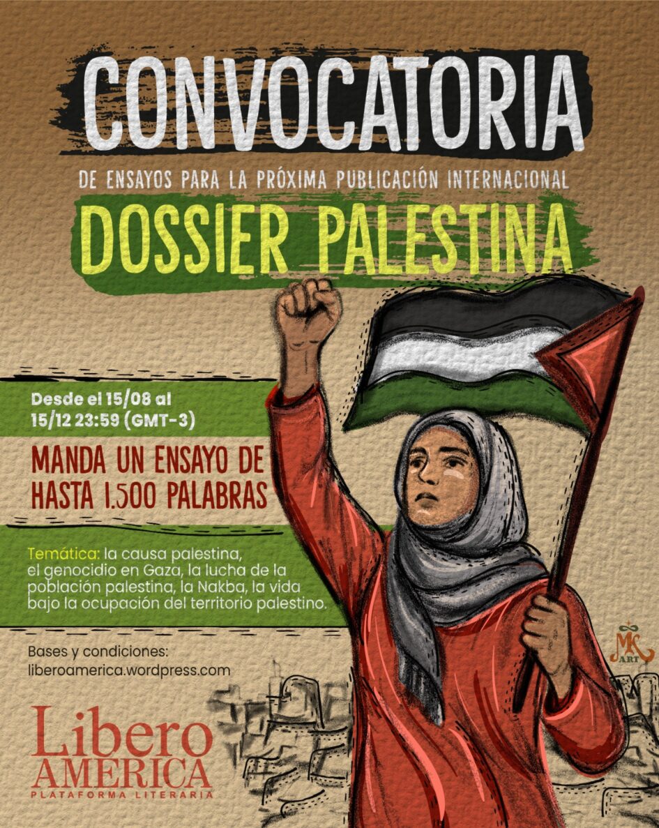 La plataforma literaria internacional Liberoamérica fundada originalmente en España en 2017, hoy administrada en Paraguay por el Colectivo Asunción Flores, convoca a ensayos de hasta 1.500 palabras sobre la causa palestina y el genocidio en Gaza. Los ensayos seleccionados conformarán la publicación «Dossier Palestina», a ser difundida en 2026 en diferentes países del mundo. La convocatoria cierra el 15 de diciembre a las 23:59 (hora Paraguay).