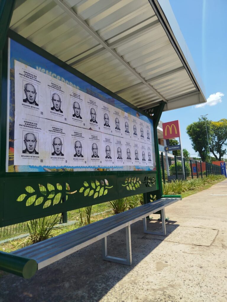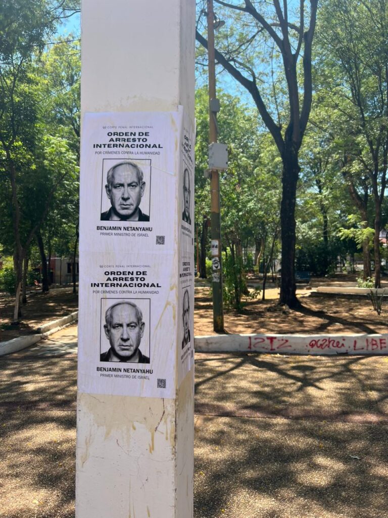 El 2 de marzo, afiches con la orden de arresto internacional contra Benjamin Netanyahu, el primer ministro del Estado de Israel, emitida por la Corte Penal Internacional, aparecieron en varios puntos de la ciudad.