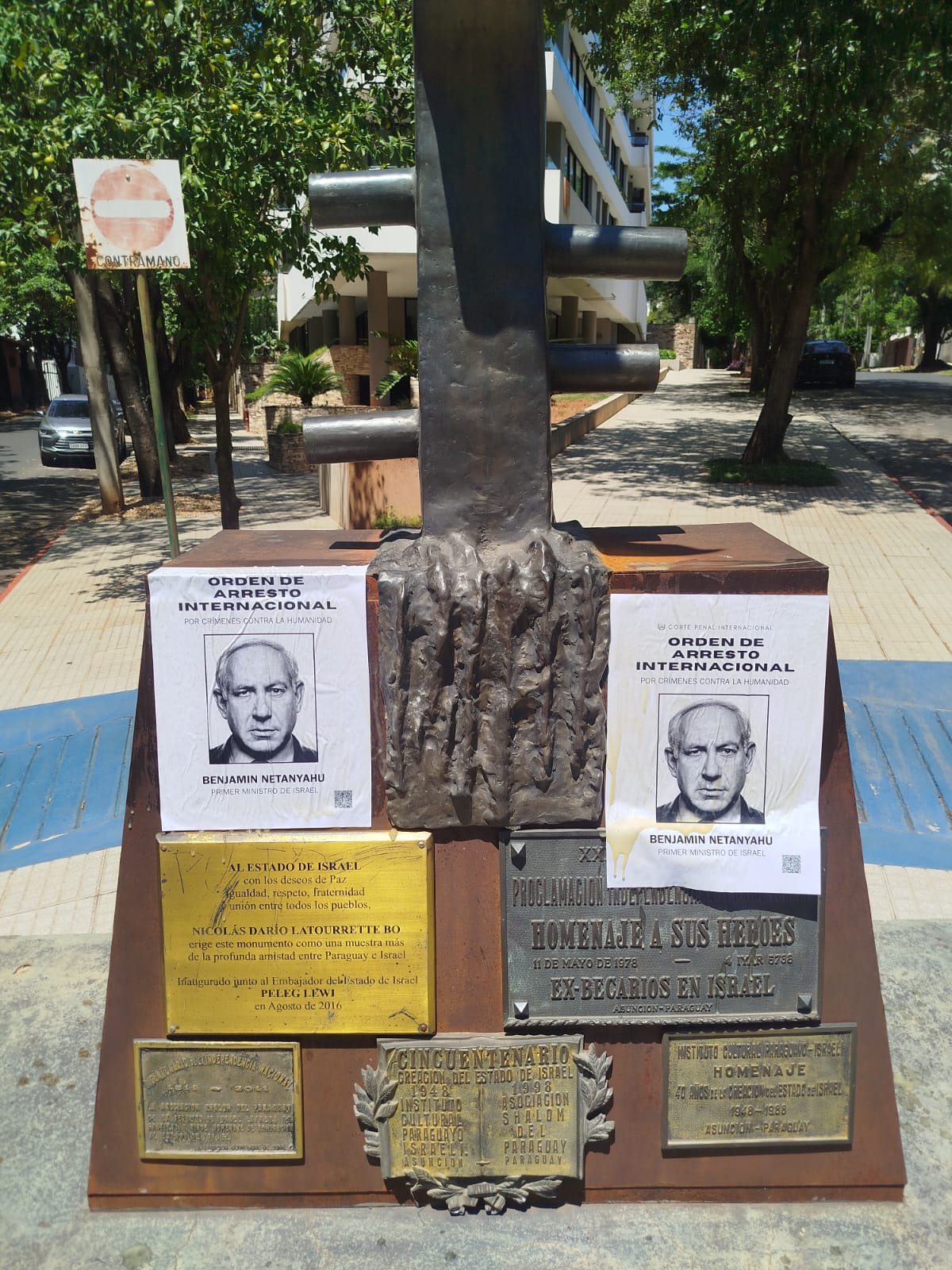 Afiches con orden de arresto internacional contra primer ministro de Israel aparecen en varios puntos de la ciudad de Asunción